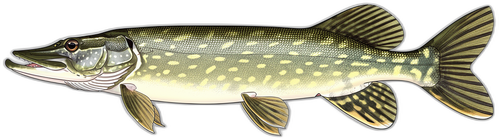 Lagos, ríos, embalses, estanques — lucio, lobina, lucioperca, trucha, carpa, siluro. Accesible, regional, profundamente local.