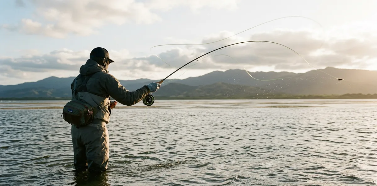 Wading en rivière : pierres glissantes, hypothermie, courants forts. Le backcast peut accrocher des passants, d’autres pêcheurs ou le guide —attention à l’espace derrière soi. La mouche en mer exige une excellente maîtrise du vent (vent de travers 15–25 nœuds est courant). Soleil et réflexion sur les flats. Certaines pêches de saumon et truite exigent licences et réservation de beat des mois à l’avance.