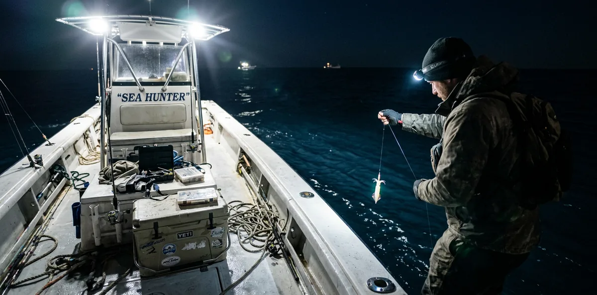 A pesca noturna muda o jogo. Temperaturas mais frescas, menos tráfego de embarcações, padrões de alimentação diferentes e espécies que simplesmente não mordem durante o dia saem após o anoitecer. A atmosfera também é outra: água silenciosa, luar e o ritmo tranquilo de uma vara sob as luzes do convés.
